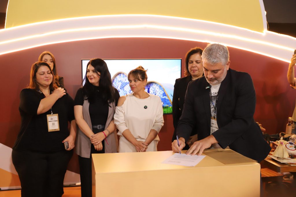 A Empresa Mineira de Comunicação (EMC), a Universidade Federal de Alfenas (Unifal-MG) e o Instituto Gesto se uniram para a criação do Observatório do Audiovisual Mineiro. A assinatura do protocolo de intenções aconteceu ontem (19), durante o 8º Encontro de Gestores de Cultura e Turismo de Minas Gerais, e contou com o apoio da Secretaria de Estado de Cultura e Turismo de Minas Gerais (Secult-MG). Estiveram presentes o presidente da EMC Gustavo Mendicino, a secretária-adjunta de Estado de Comunicação Bárbara Botega, a secretária-adjunta de Estado de Cultura e Turismo Josiane Souza, a subsecretária de Turismo, Patrícia Moreira, o vice-reitor da Unifal Alessandro Antônio Costa Pereira; e a presidente do Instituto Gesto Aryanne Ribeiro.